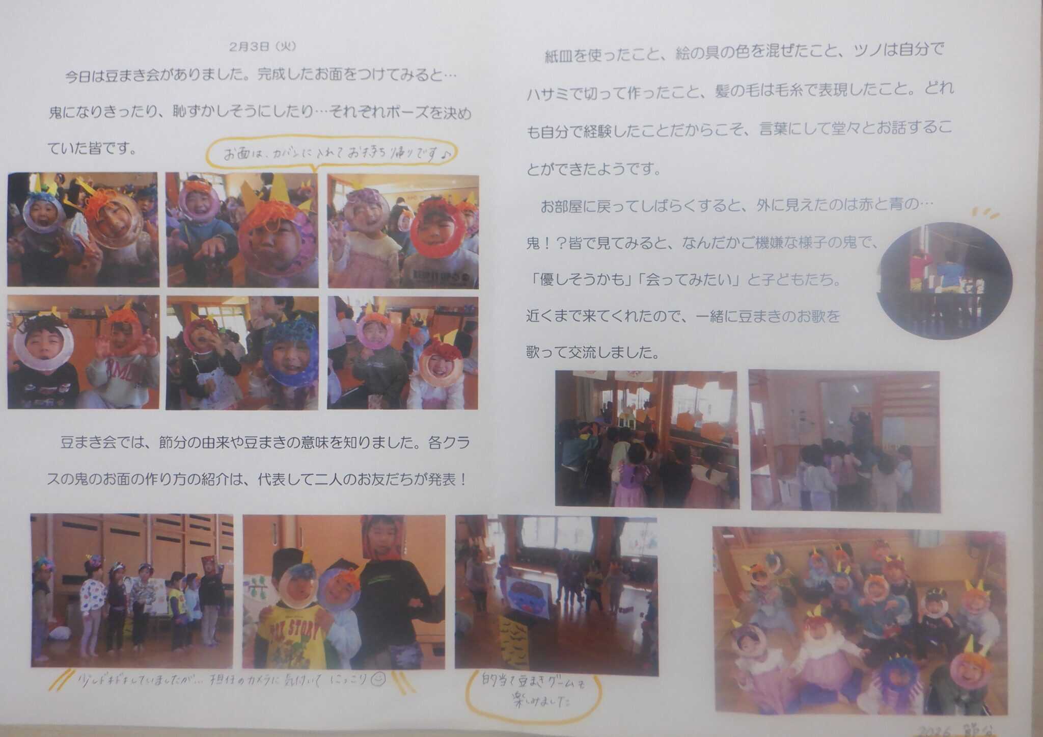 各クラス楽しい可愛らしい鬼のお面をかぶり、豆まき会をそれぞれに楽しみました(*^^)v