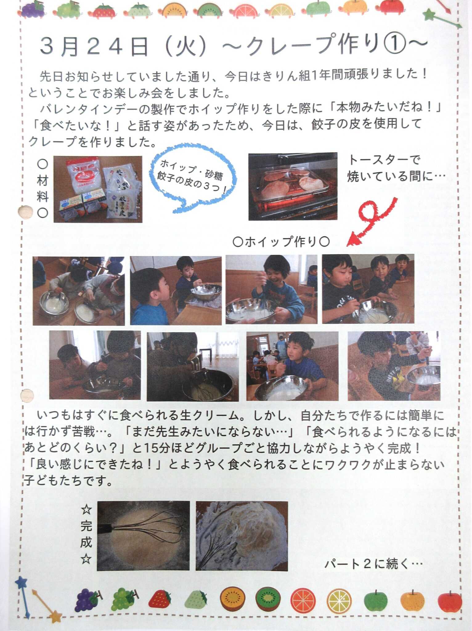 本物のホイップ作りは大変だったようですが、皆笑顔いっぱいで頬張っていました♡