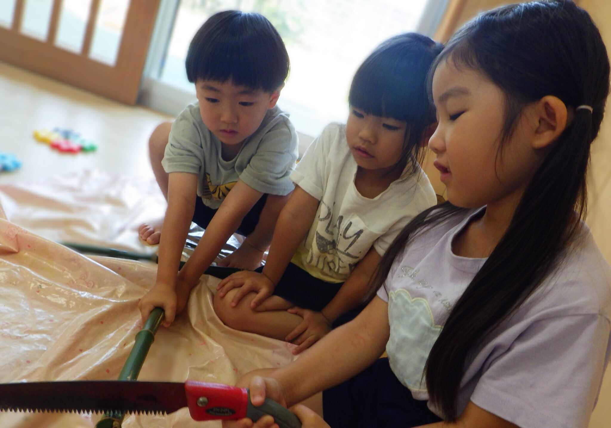 危ないから使わせないのではなく、道具の正しい使い方や安全な使い方を知らせると、子どもたちはとても集中して取り組みます。そして、器用に自分で道具をうまく使いこなすことが出来るようになります。もちろん危なさも便利さも両方理解。