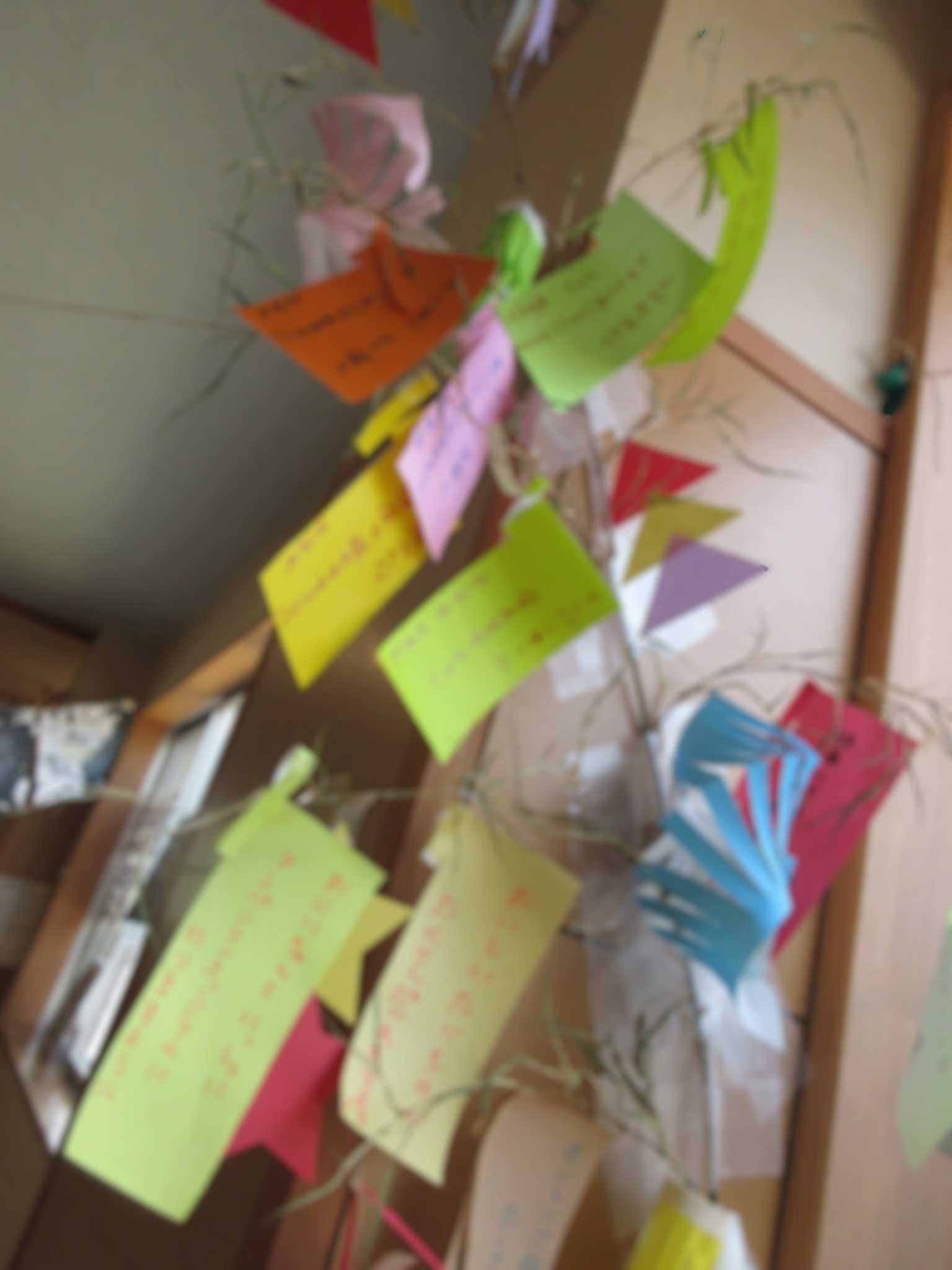 園内あちこちにおうちの方と子どもたちの願いが飾られています☆