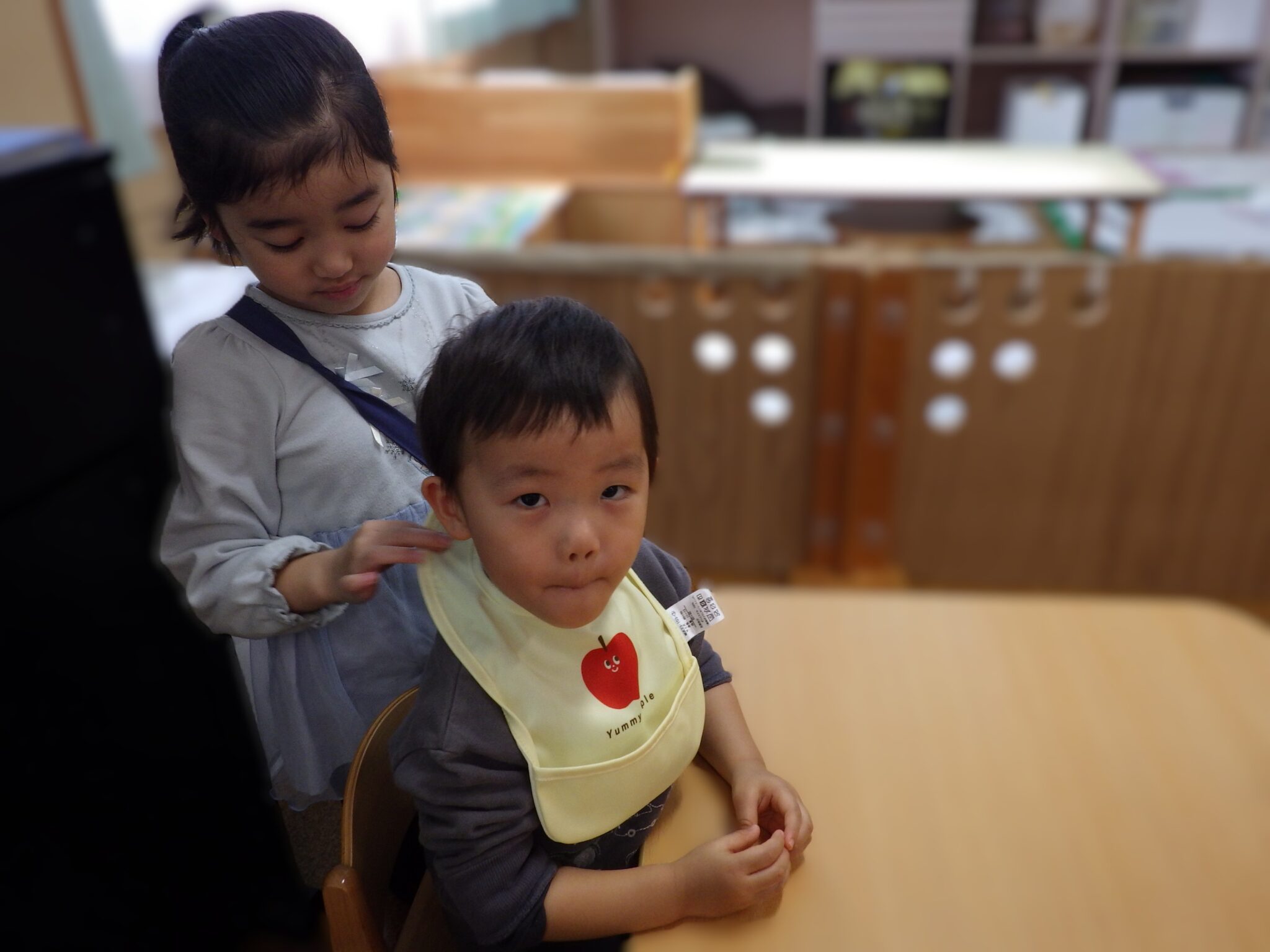 ひよこ組(0歳児)さんのお世話をしてくれる姿が( *´艸`)