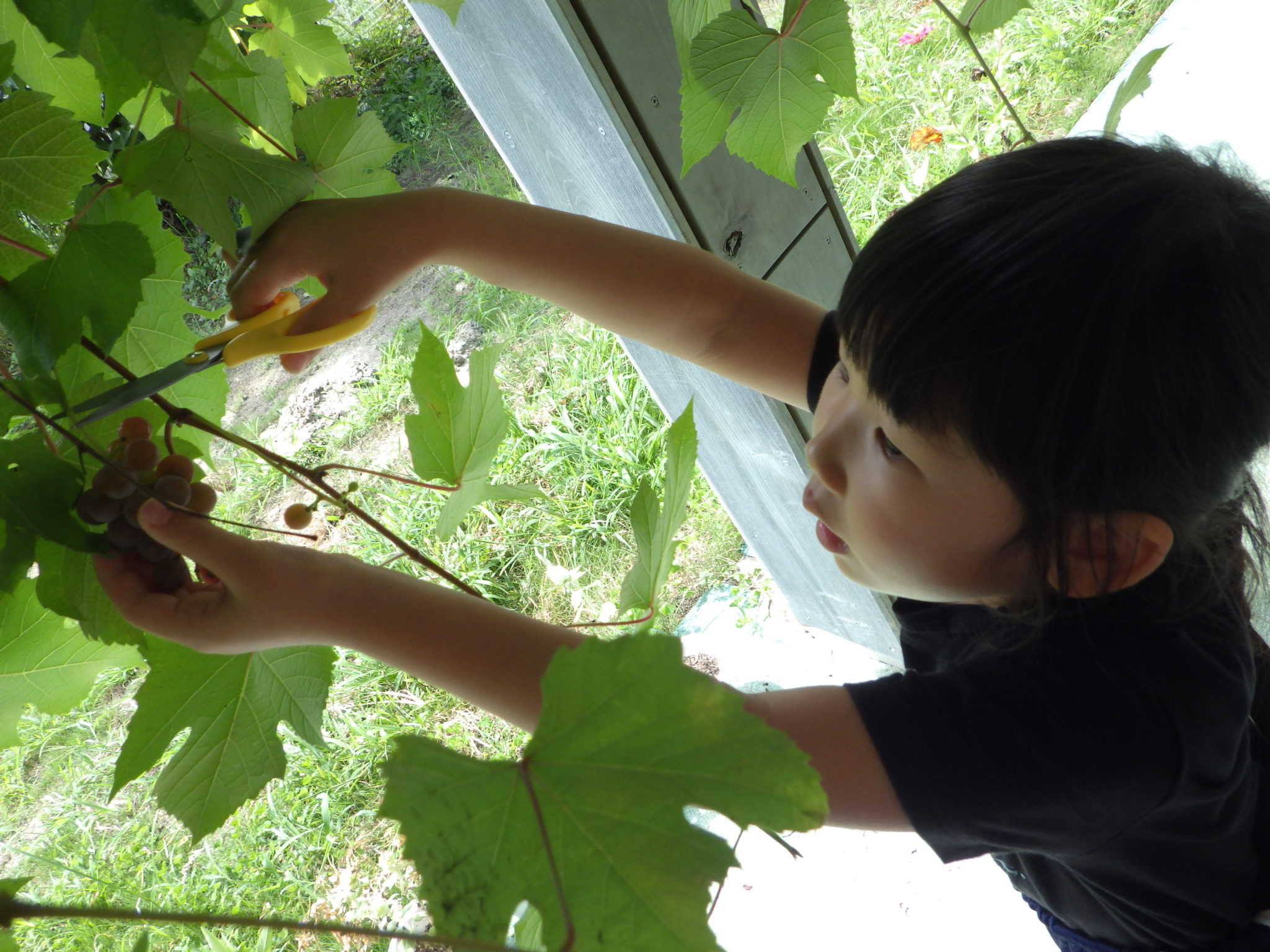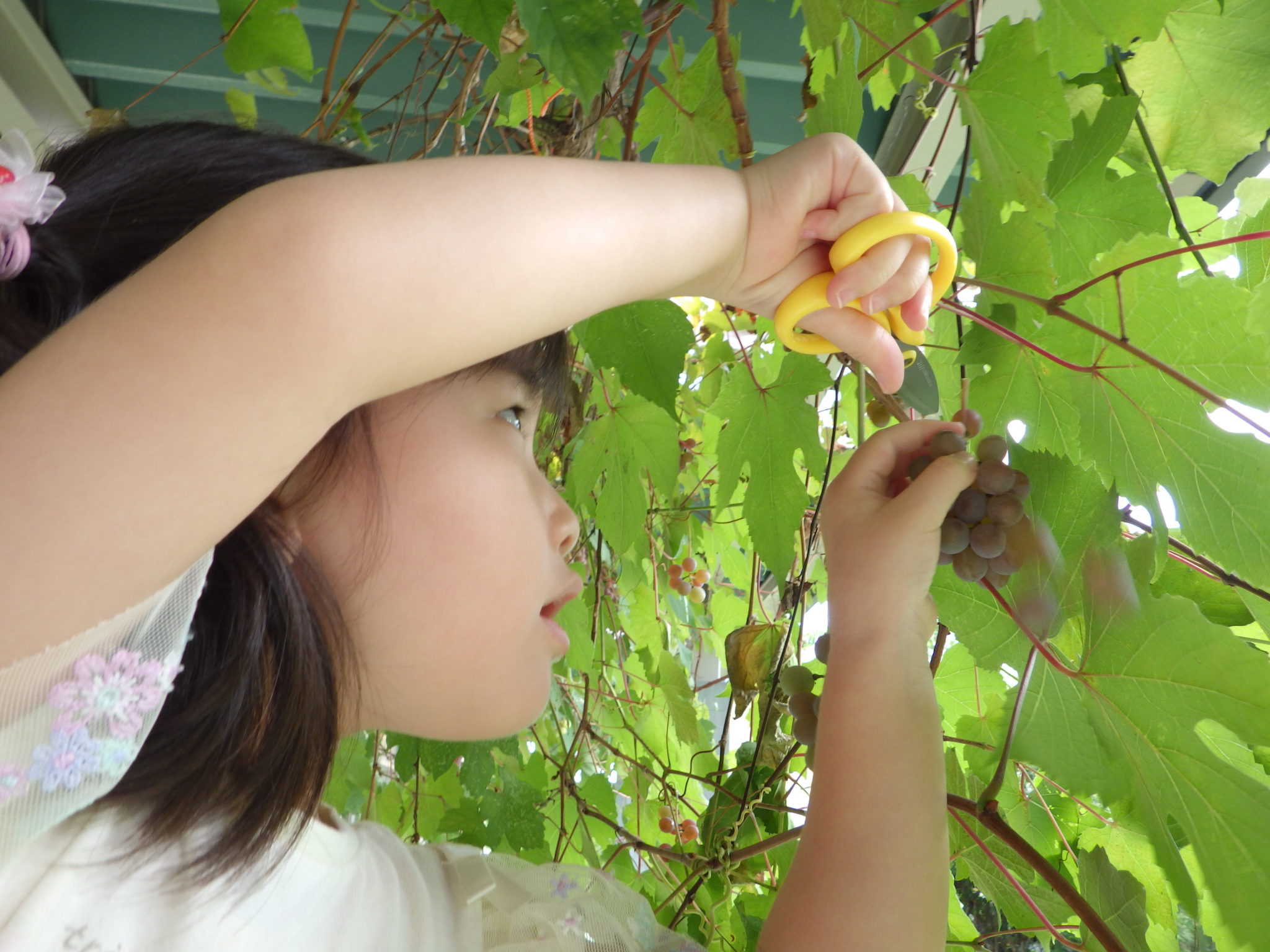 ハサミを使って、「これかな~?」「こっちの方が美味しそう!」と、美味しそうなぶどうを見極めて…