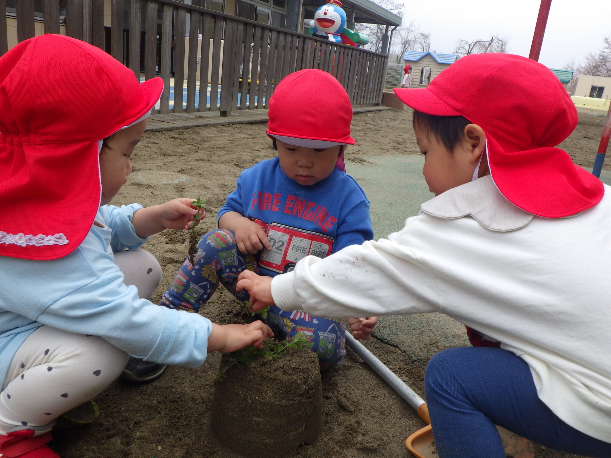 この春から中園庭(通称ドラえもん園庭)でも遊ぶようになったうさぎ組さん♪
