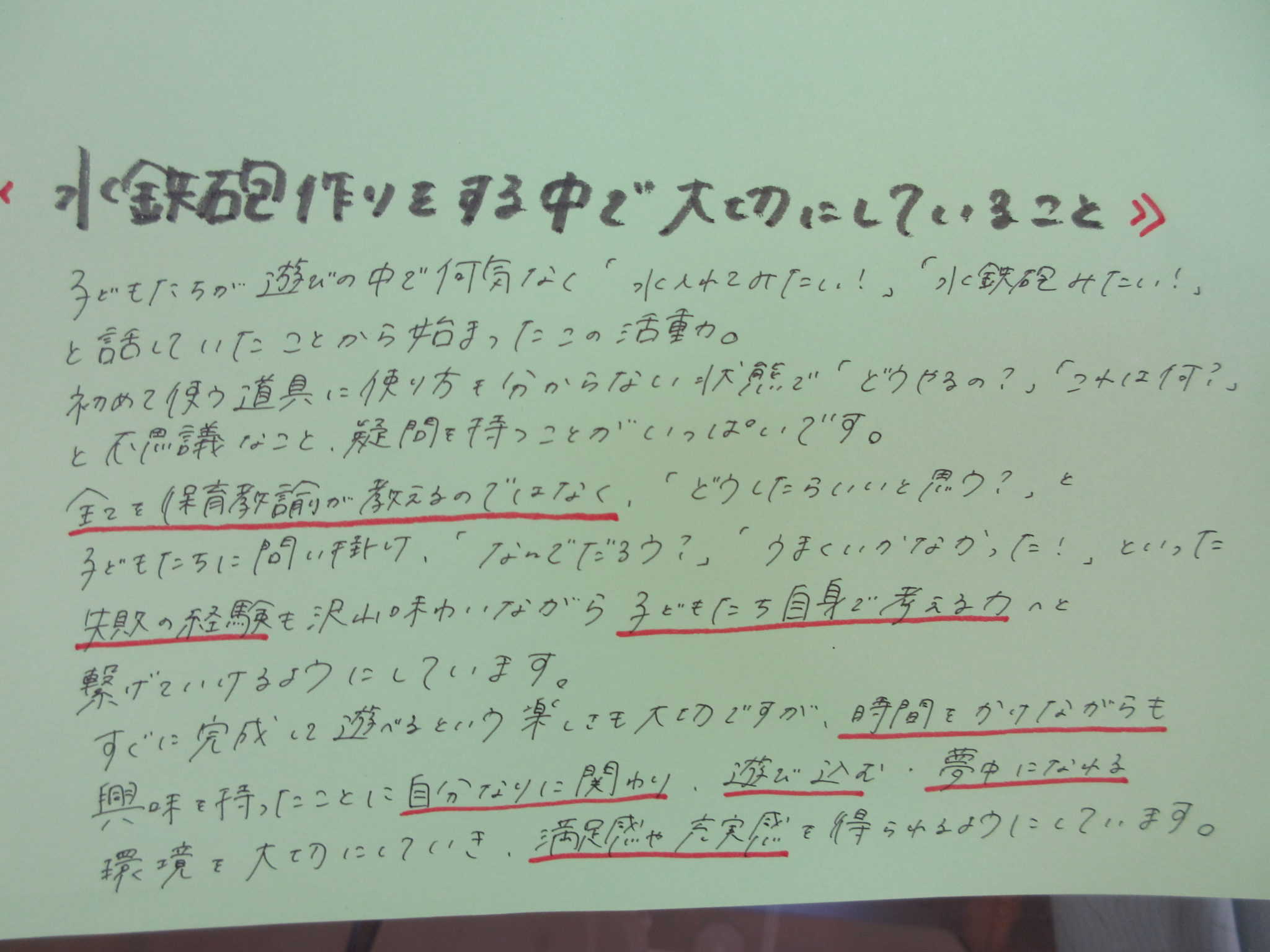 子どもたちが目をキラキラさせながら、楽しんで試行錯誤する姿の中には、沢山の実体験を通した学びがあります。