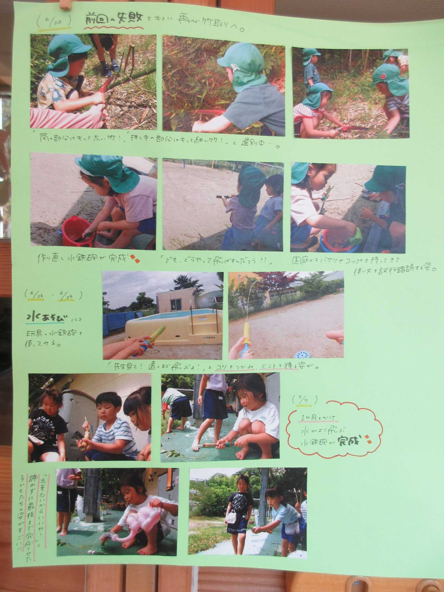 と言うことで、きりん組は夏祭りのコーナーに水鉄砲コーナーをつくりました