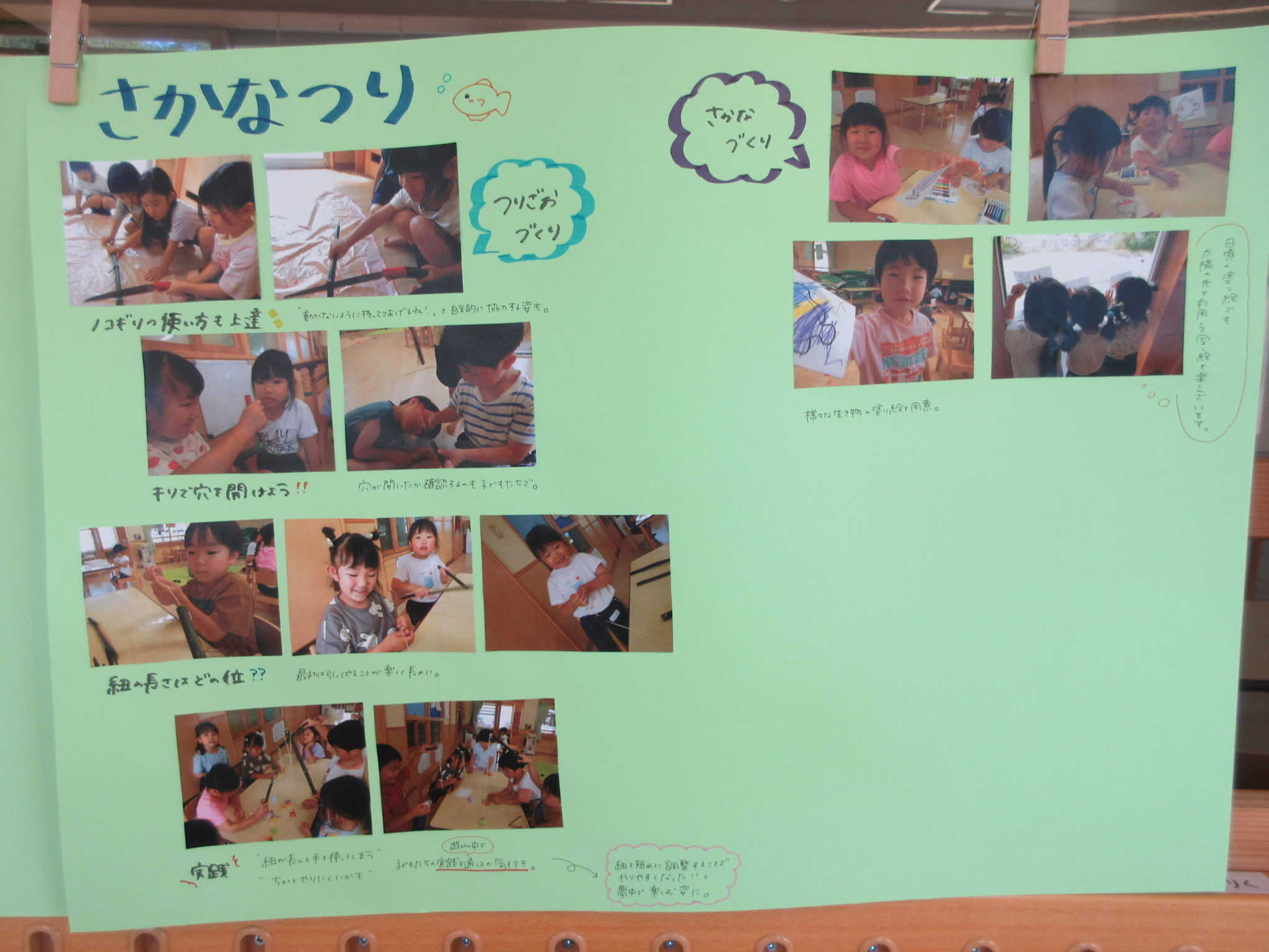 同じように、皆で工夫しながら作った竹を釣竿にした魚釣りコーナーも🐟