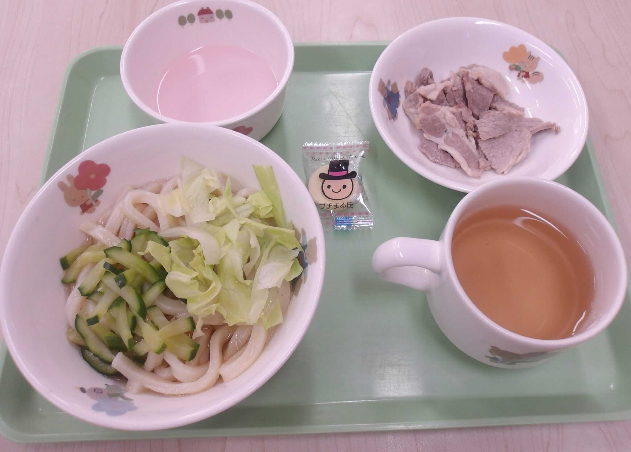レストラン大きいクラスの子どもたちは、冷しゃぶをうどんに乗せ、冷しゃぶうどんにして食べていました(*^-^*)