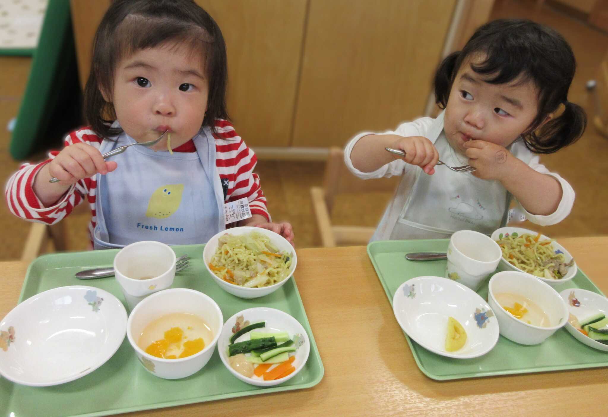 りす組(1歳児)の子どもたちも、「ちゅるちゅる~🍜」「おいしい~♪」と、喜んで食べていました♪