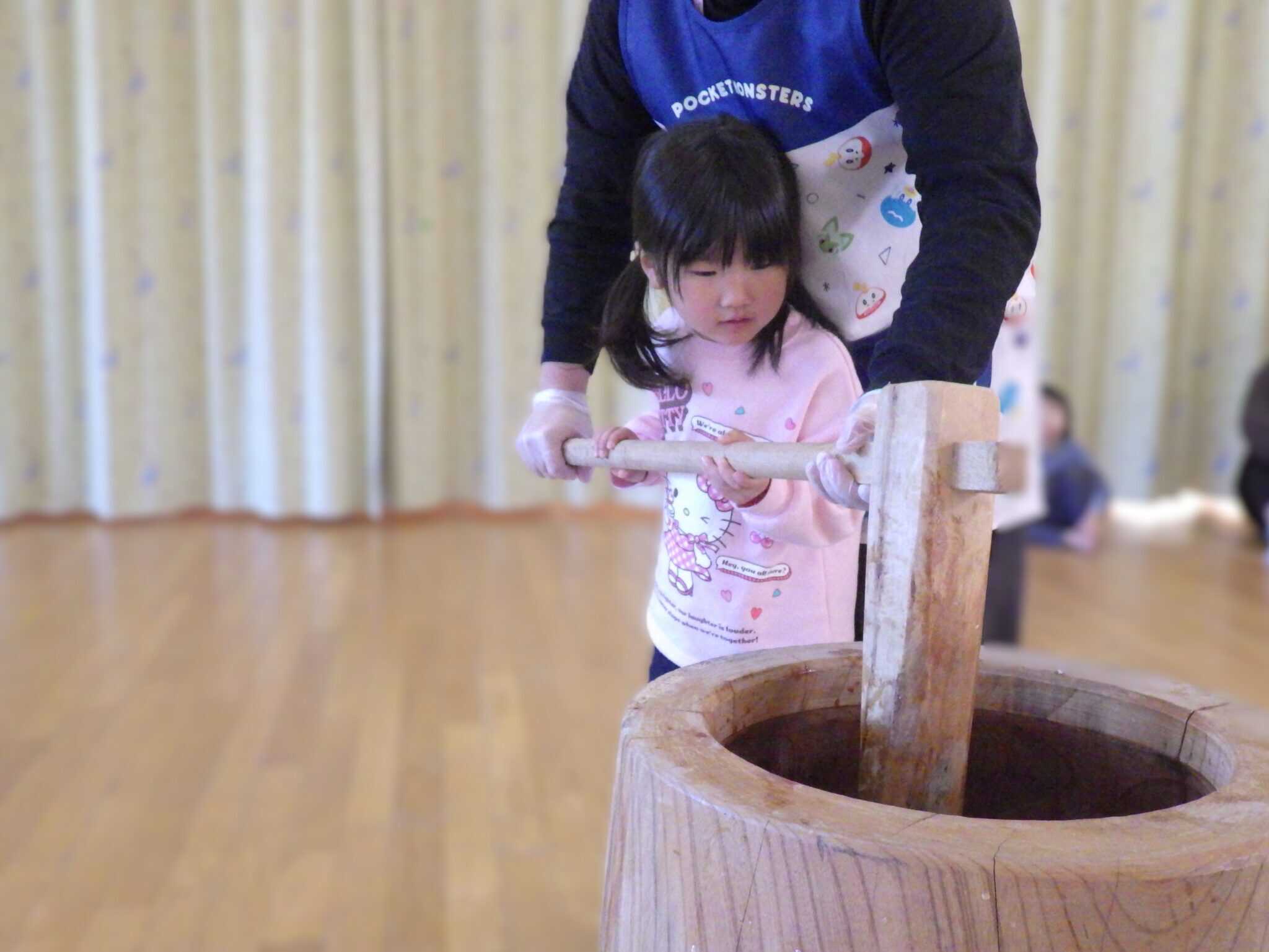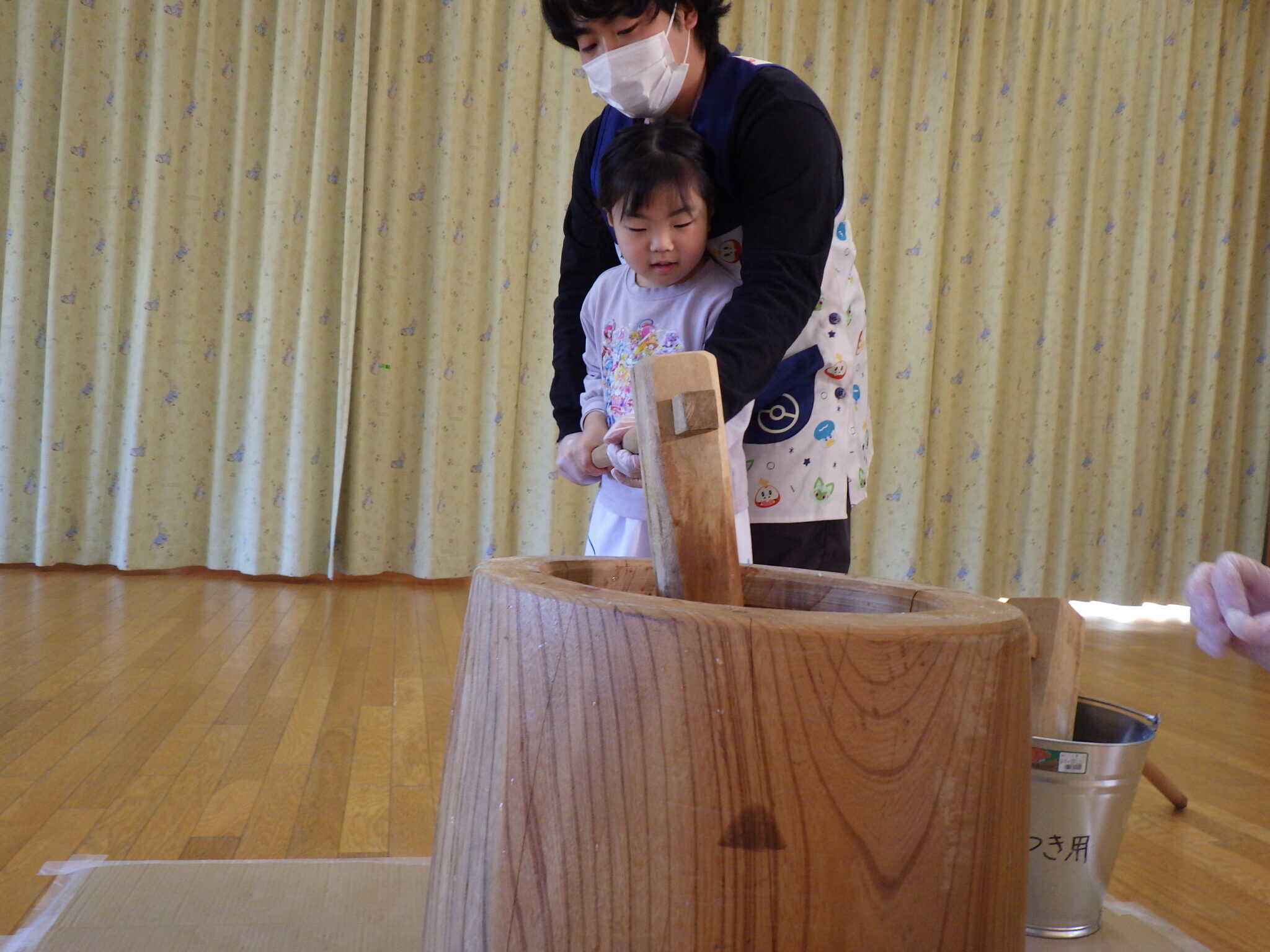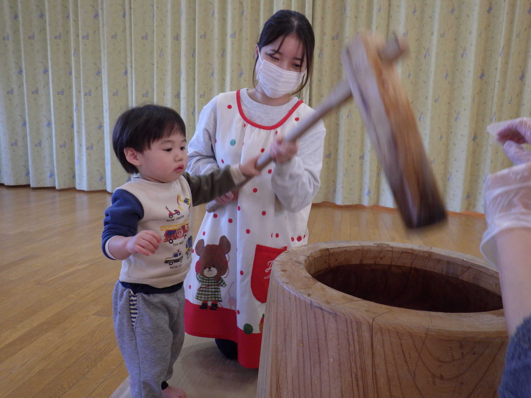 小さいお友達も杵と臼でお餅つき(*^-^*)