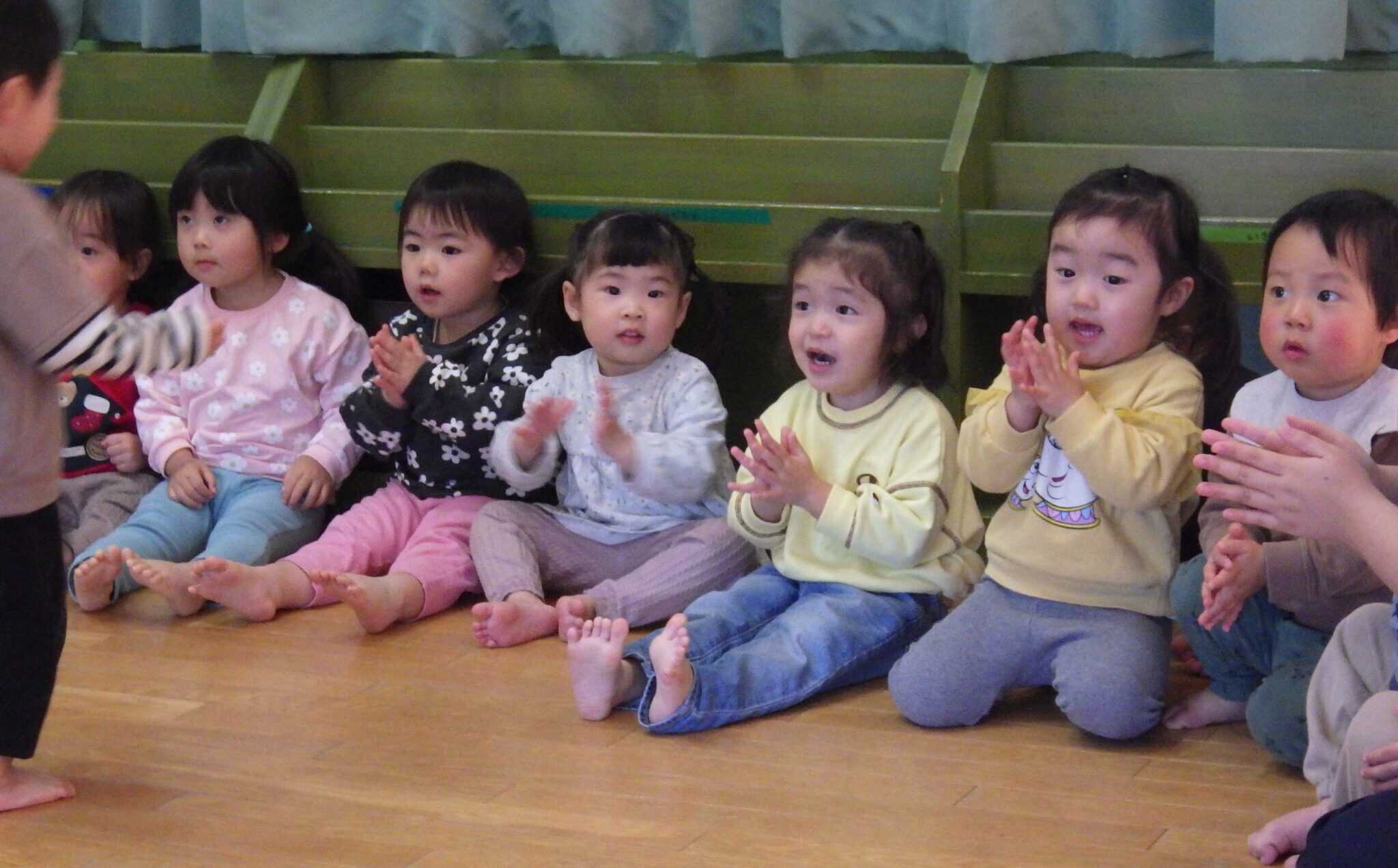 一生懸命に「よいしょ~!」と、かわいい掛け声で友達に声援を送ってくれるりす組(1歳児)さん♪