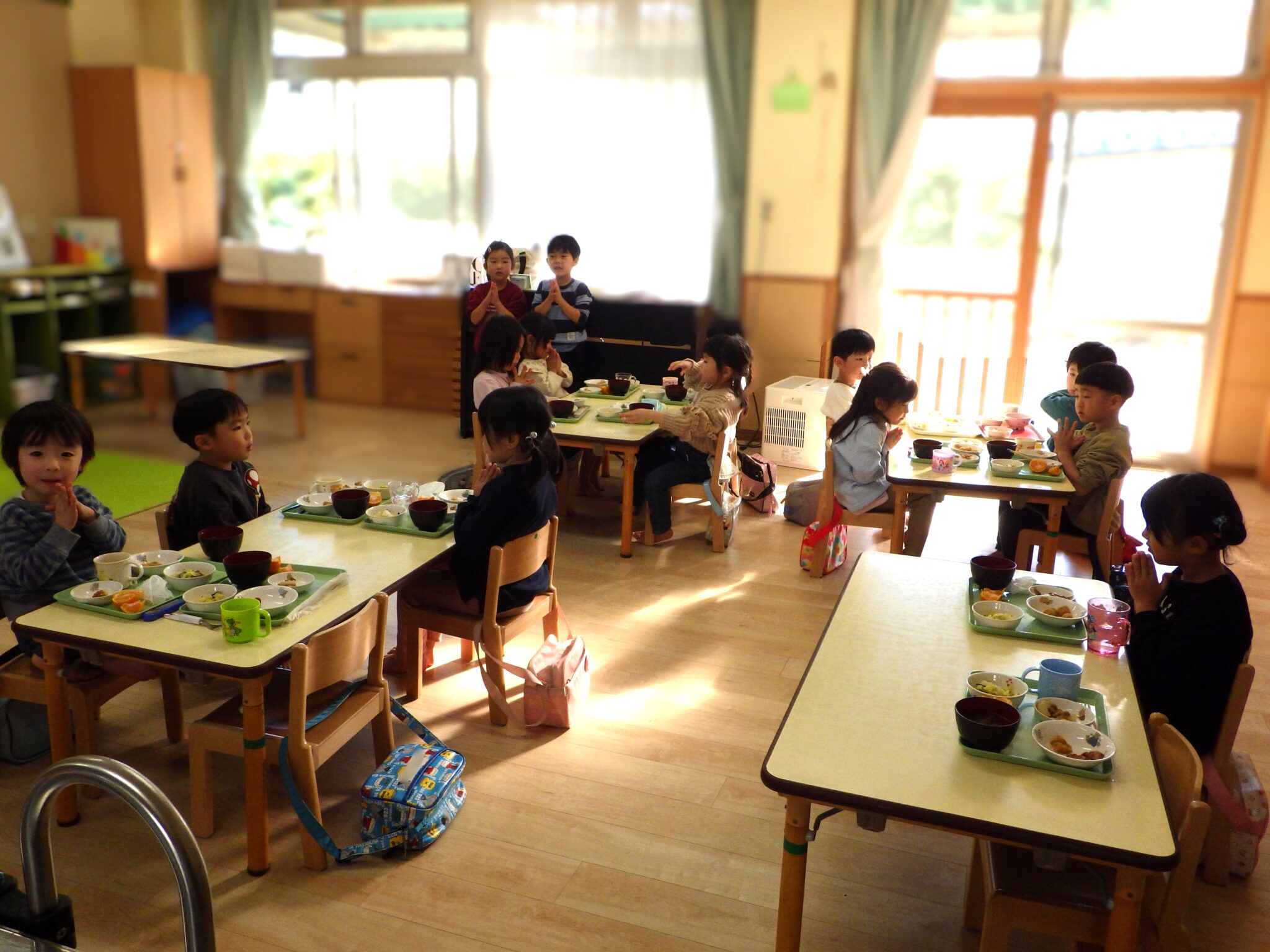 (※安全面に十分に配慮し、大きいクラスの子のみ喫食しました。)